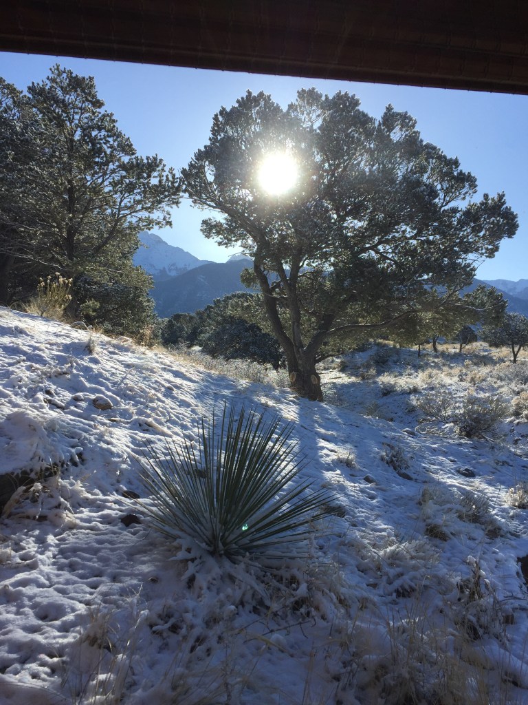 I look out into my front yard and see dead bees mounting up on the ground around one hive. I fear they haven’t survived the frigid 20 degree temps. I see the Roadrunner as a shadow in the distance, patiently waiting for me to exit so he can swoop in for a feast of bee protein.