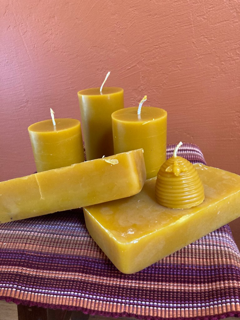 Because of its incredible qualities of adherence and sealing, beeswax is used for candle and soap making, lubricants, furniture and shoe polish, granite countertop polish, cheese waxes, beard and mustache waxes, crayons, envelope seals and more….tell me if I missed something!