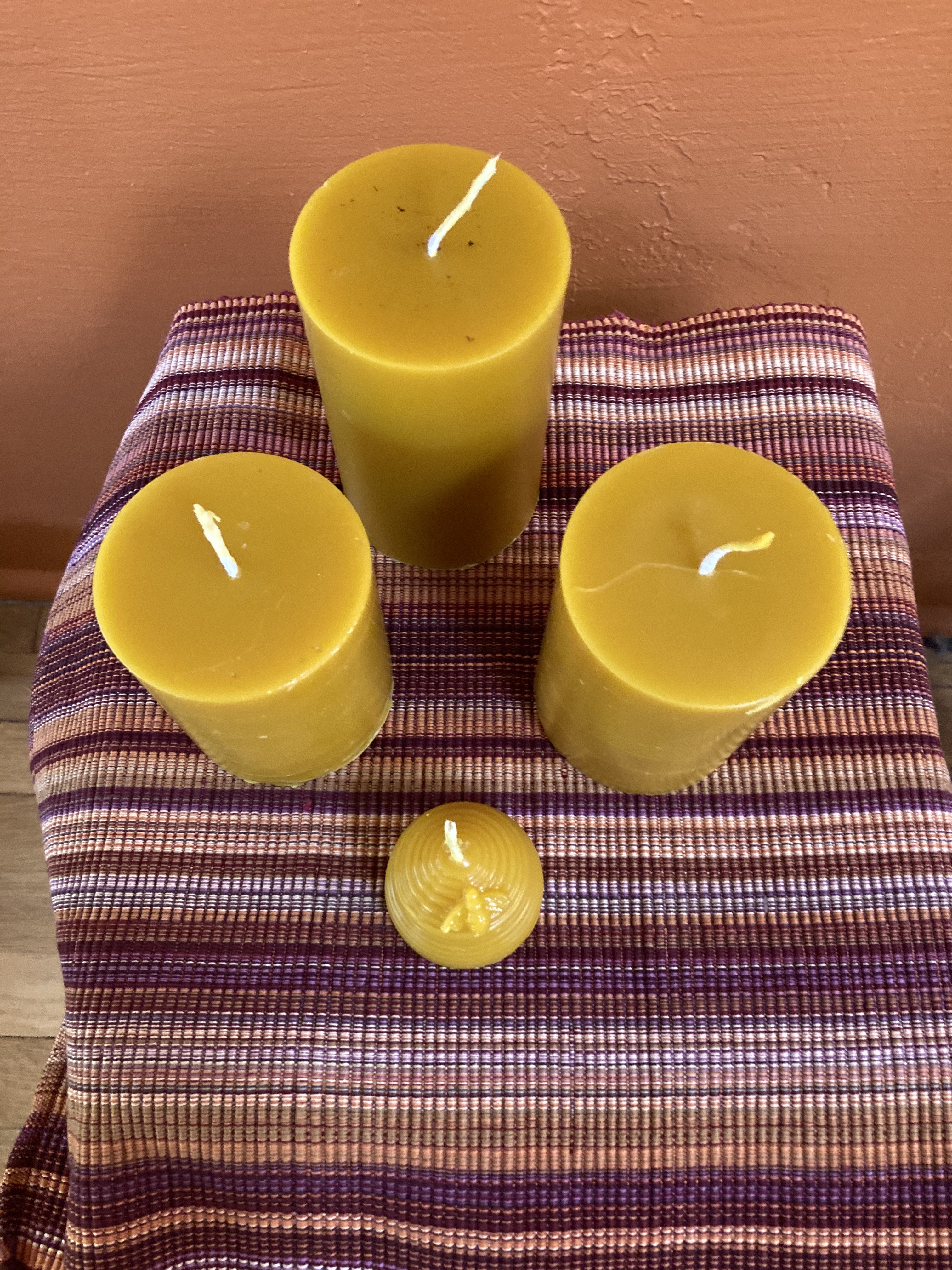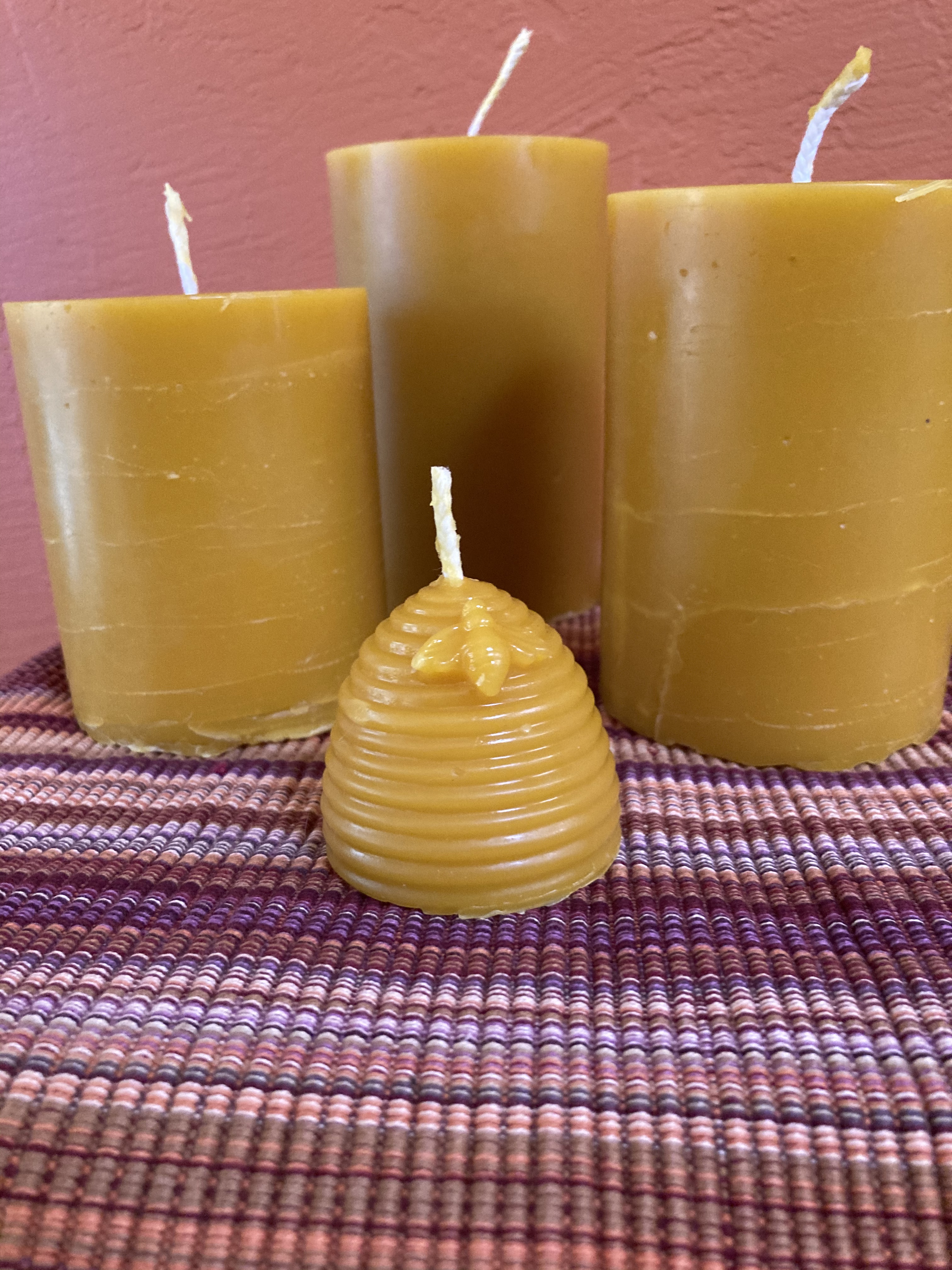 For candles, it is a non-toxic alternative to those fossil fuel based candles on the market, usually laden with synthetic perfumes and dyes. Beeswax candles have a fresh, sweet, natural honey smell that permeates the room. Because beeswax has a higher melting point than other waxes, it emits the brightest, most warm-toned flame. Beeswax candles also last longer than most other candles. Because it is so dense (0.958), it burns slower and drips less. A 3X6 pillar candle is known to burn over 100 hours.