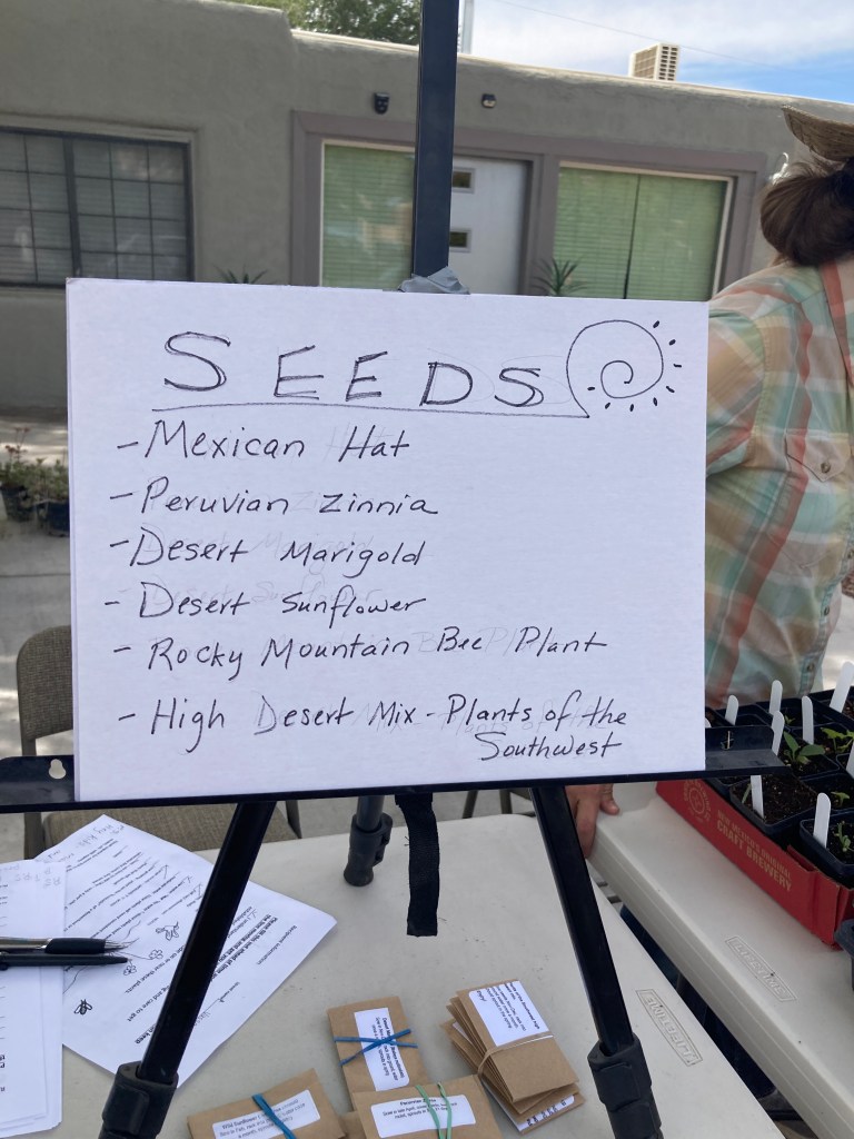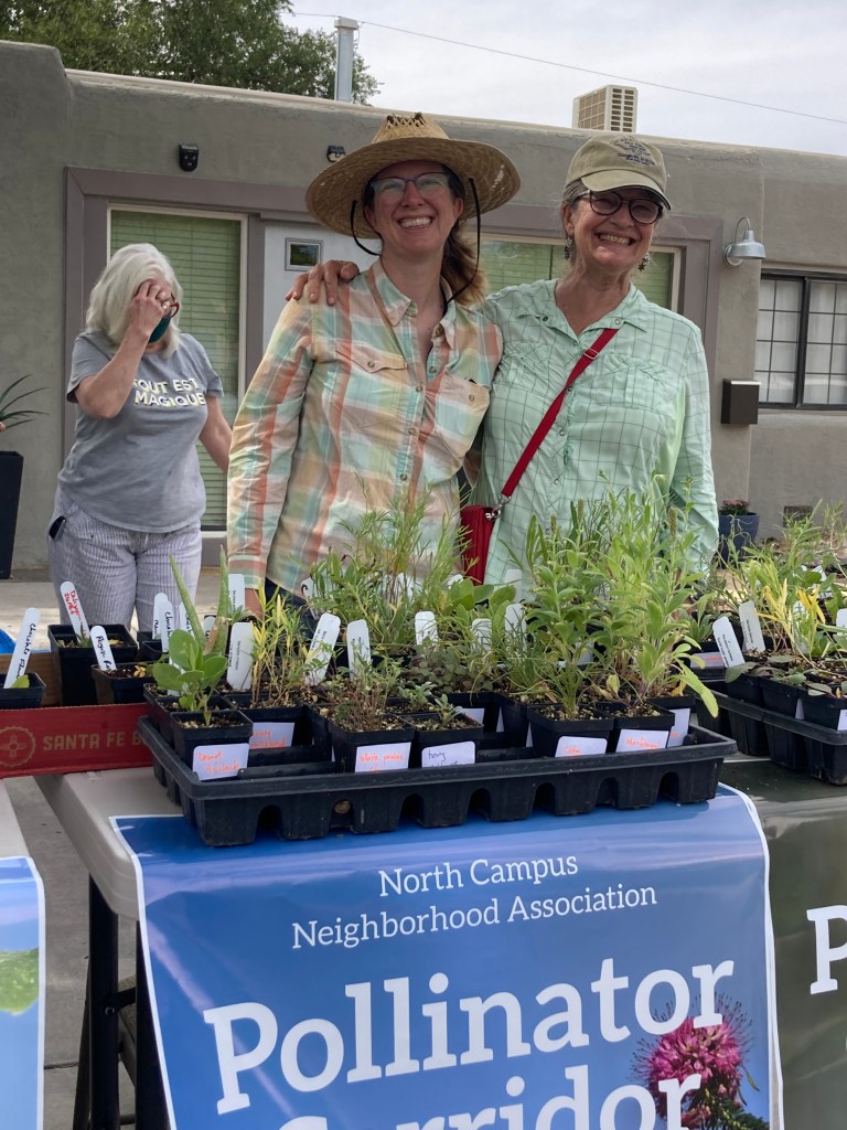 Soon Terry and her daughter, Eva, embarked on a COVID year project to raise the money from the city and her local neighbors, as “seed money” for her pollinator plant corridors. Terry’s goal was to inspire neighbors with free plants to create oases of pollinator habitat and begin to learn about bees and native plants of the high desert southwest. Eva, who works for the Quivira Coalition, wrote a bang up grant that we pitched to city leaders for funding.