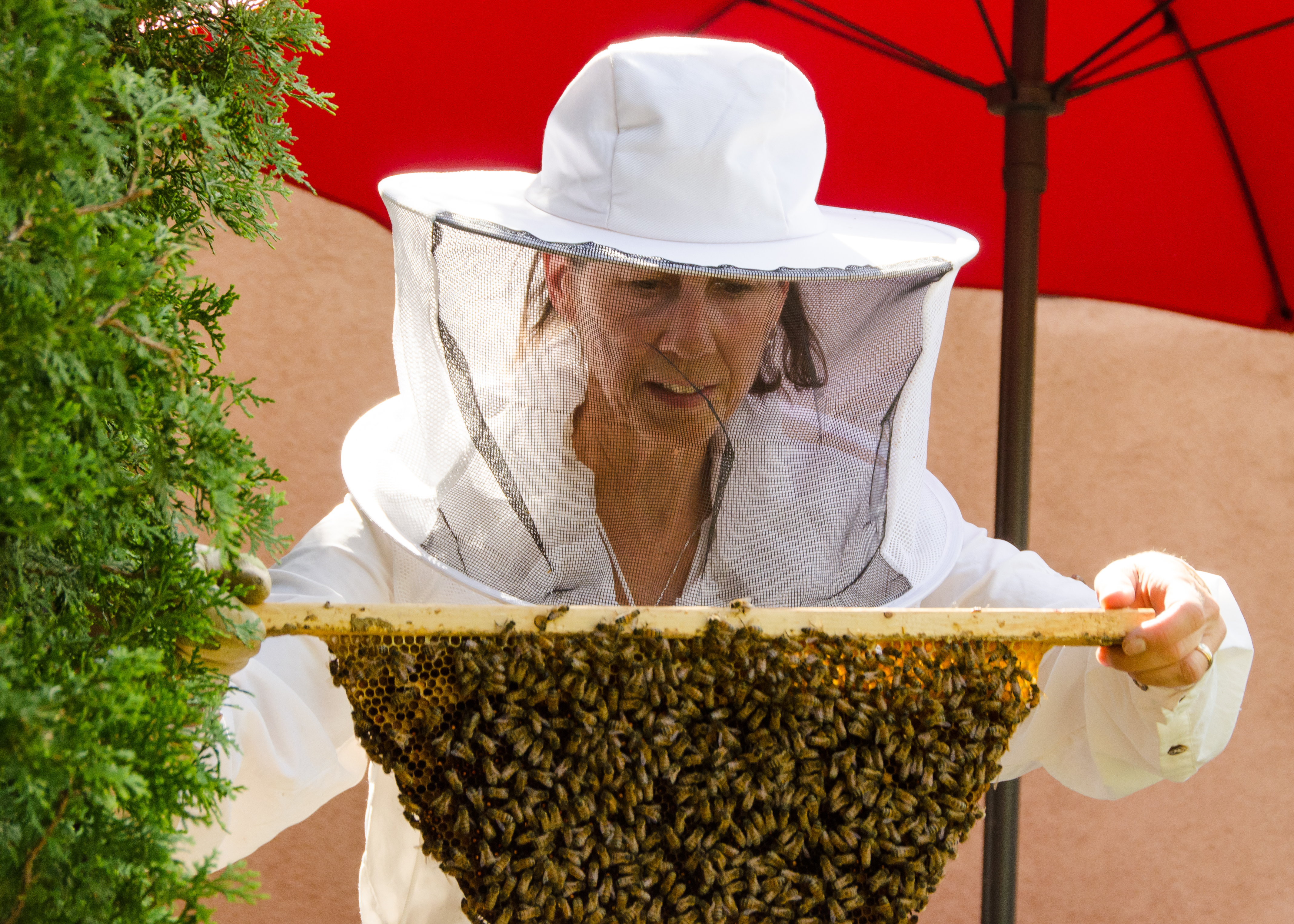 This is especially relevant because of a recent unfortunate and misguided, sensationalistic local Albuquerque t.v. news piece on “Blood Thirsty Bees”—-chronicling a community trying to bring attention to a bunch of very cranky bees. I wish the t.v. station had chosen to balance their story with some investigative journaling—-educational facts, real stories of beekeepers and the uniquely difficult and joyful job they perform—–of contributing to our planet’s health and food security. Who knows what happened to the beekeeper on the West Side. Was he in over his head? I’m not going to sit in judgement. I’d need to hear his story.