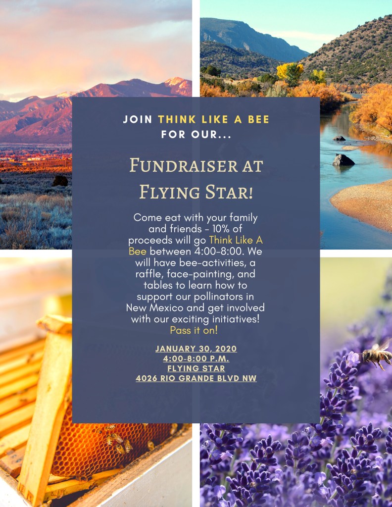 Think Like a Bee, a bee education and advocacy non-profit (501(c)3 based in Albuquerque, will host a fun(d) raiser at the Flying Star restaurant on Rio Grande, in Albuquerque, NM this Thursday, 4-8pm!